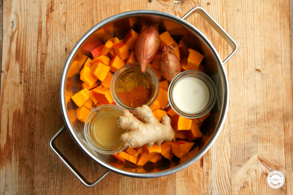 Um wenigstens ein bisschen Stimmung in die Bude zu bringen, habe ich mir den allseits bekannten Kürbistrend zunutze gemacht und eine Kürbissuppe gekocht.